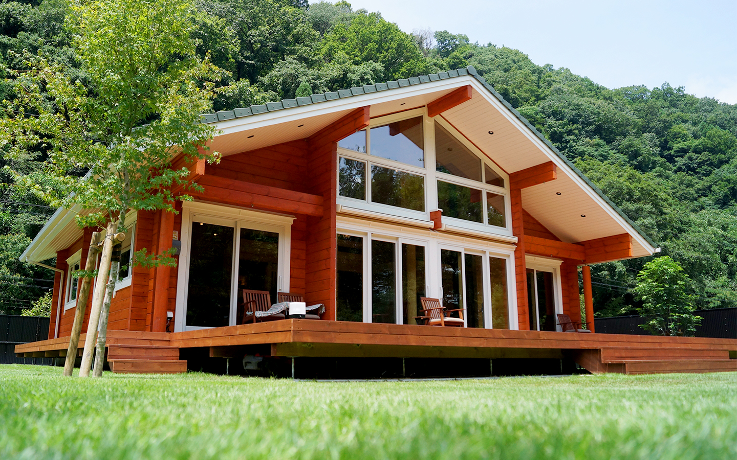例えば、安佐営業所はログハウスで芝生公園を備えており、開放的で社員も楽しく業務できる環境を整えています。